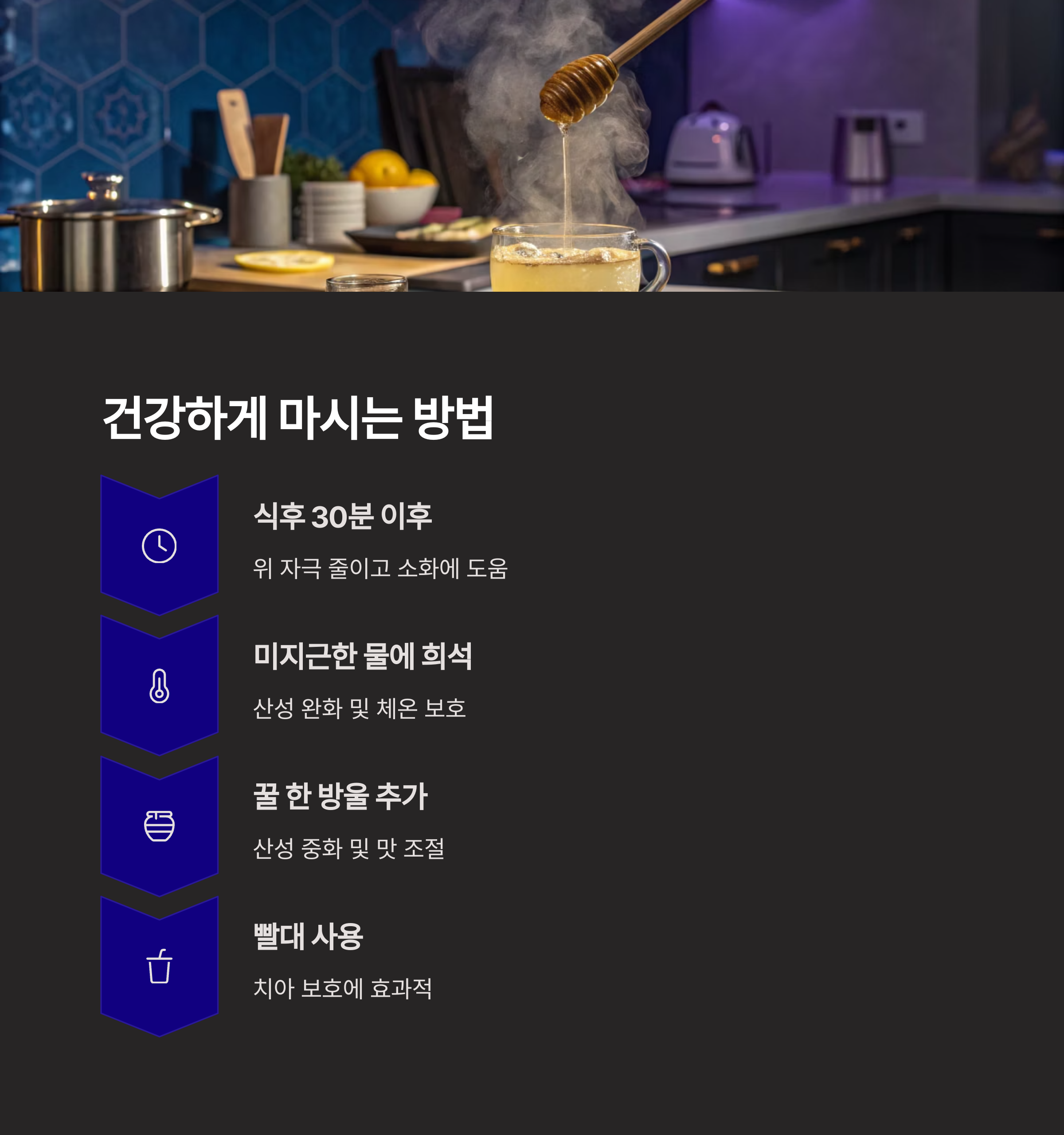 | 꿀 한 방울 추가 | 산성 중화 및 맛 조절 |