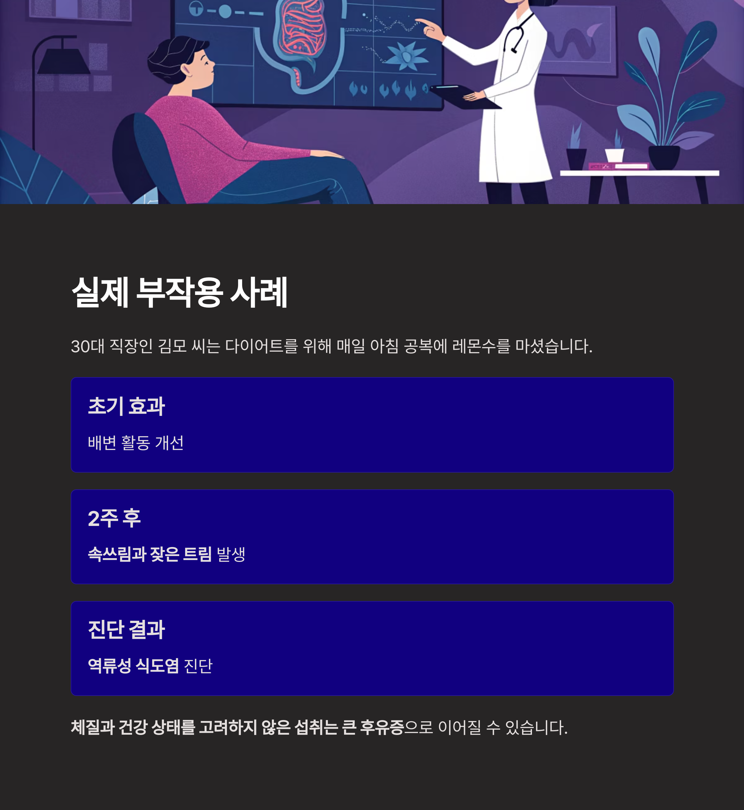 처음엔 배변이 좋아졌지만, 2주 후부터 속쓰림과 잦은 트림으로 병원을 찾았고