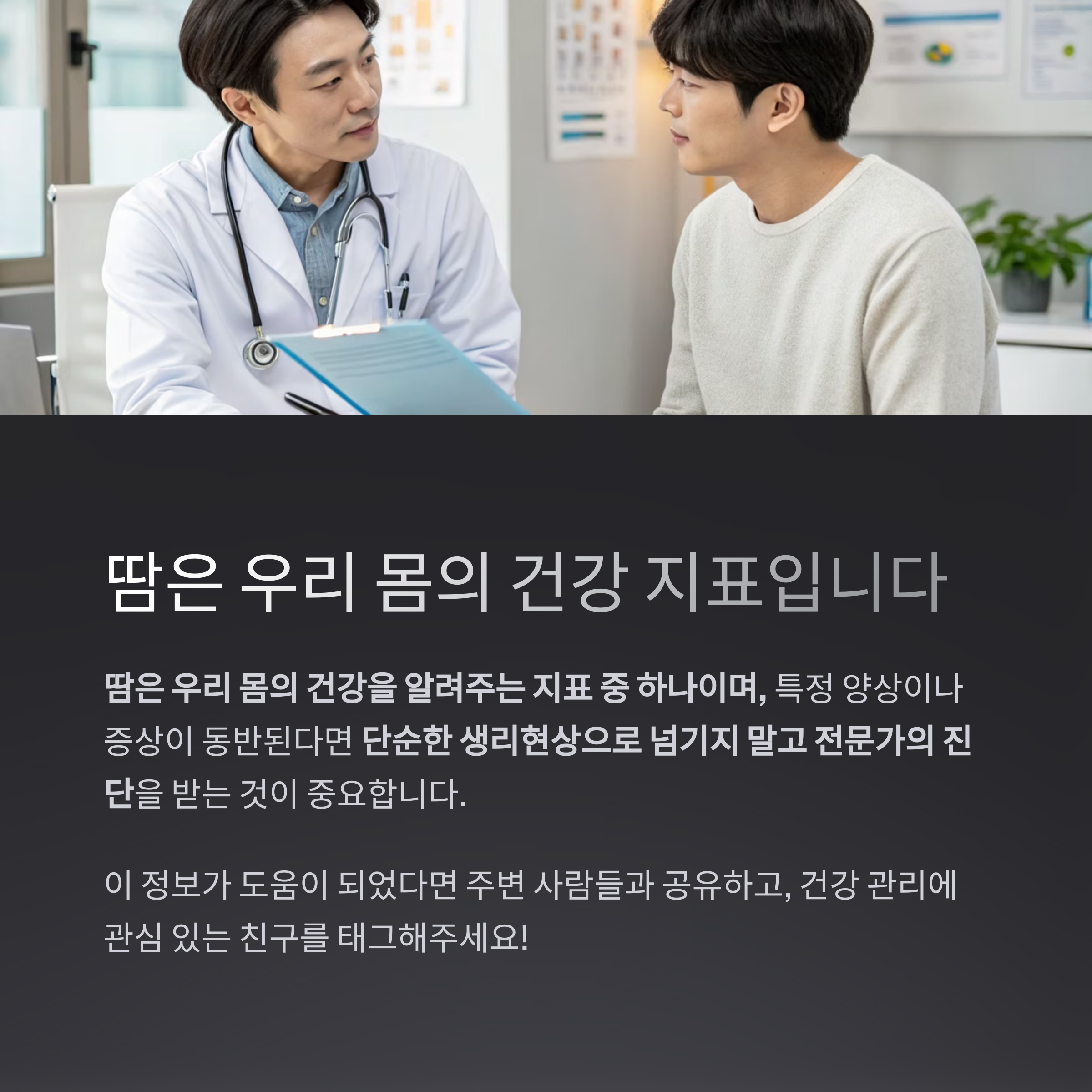 일상 속에서 누구나 경험하는 땀. 하지만 땀이 유독 많아지고 일상생활에 불편함까지 초래한다면 단순한 생리 현상이 아닌 건강 신호일 가능성을 의심해볼 필요가 있습니다.