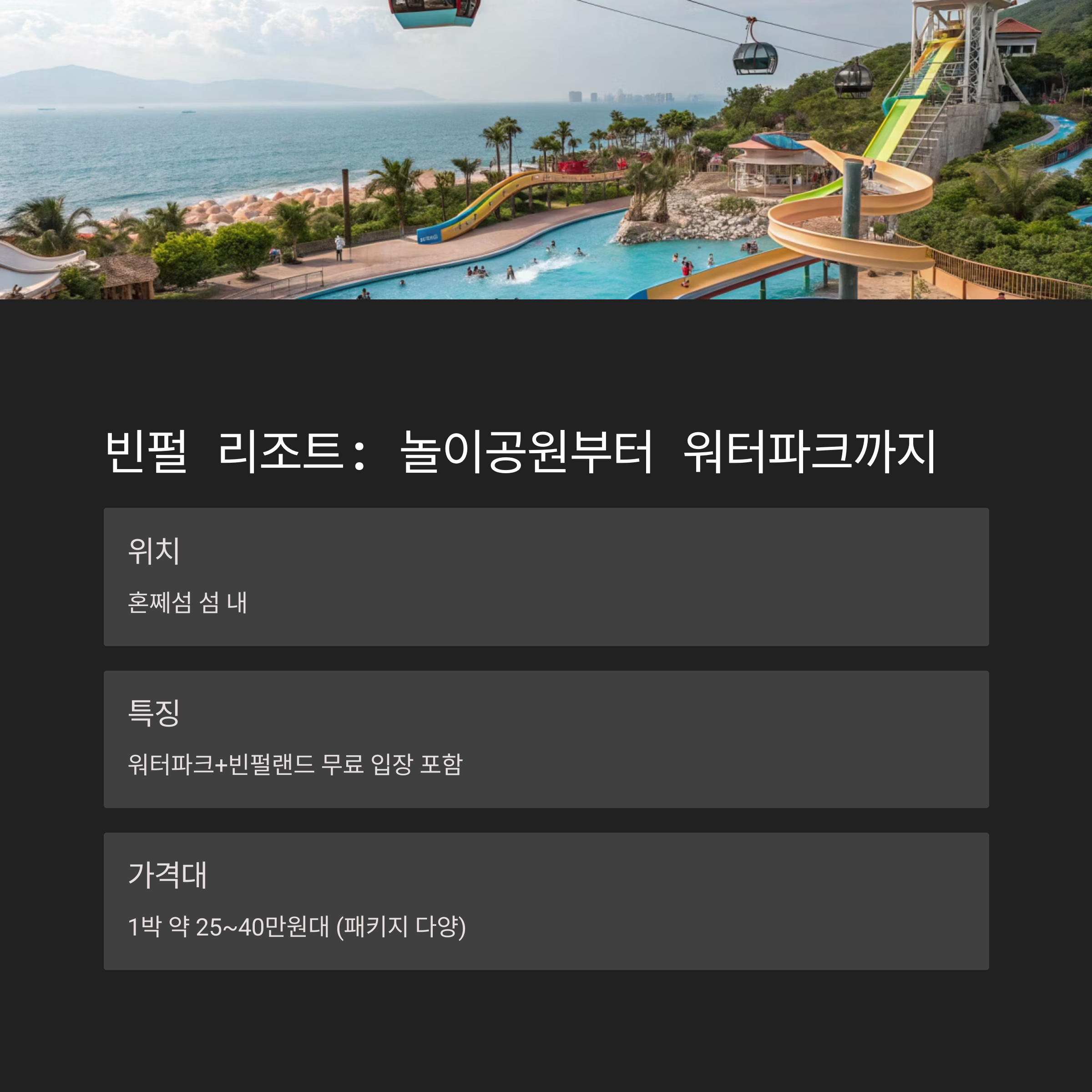 특징 워터파크+빈펄랜드 무료 입장 포함