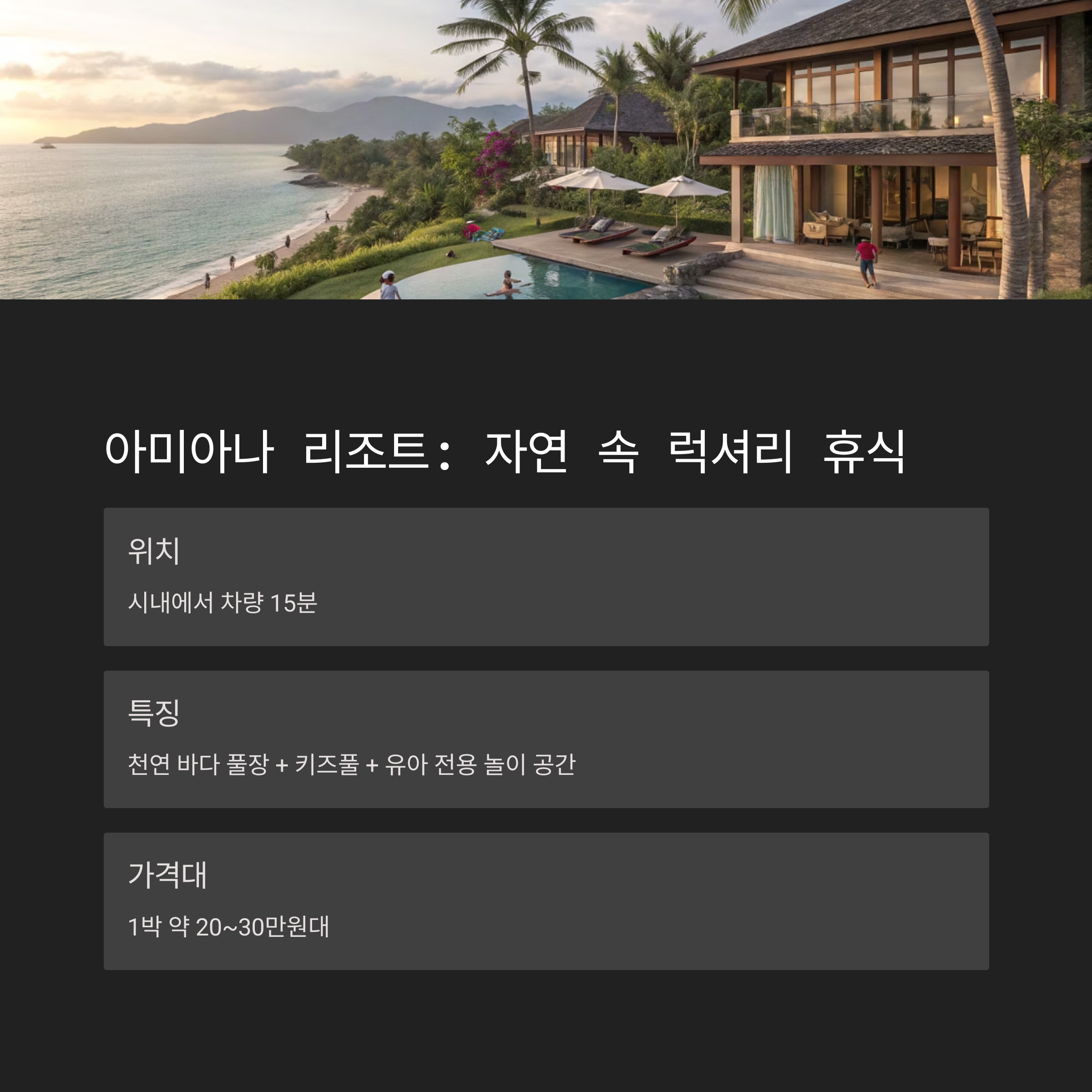 이번 글에서는 나트랑 지역에서 가족 여행객에게 특히 인기 있는 리조트 4곳을 비교 분석하여