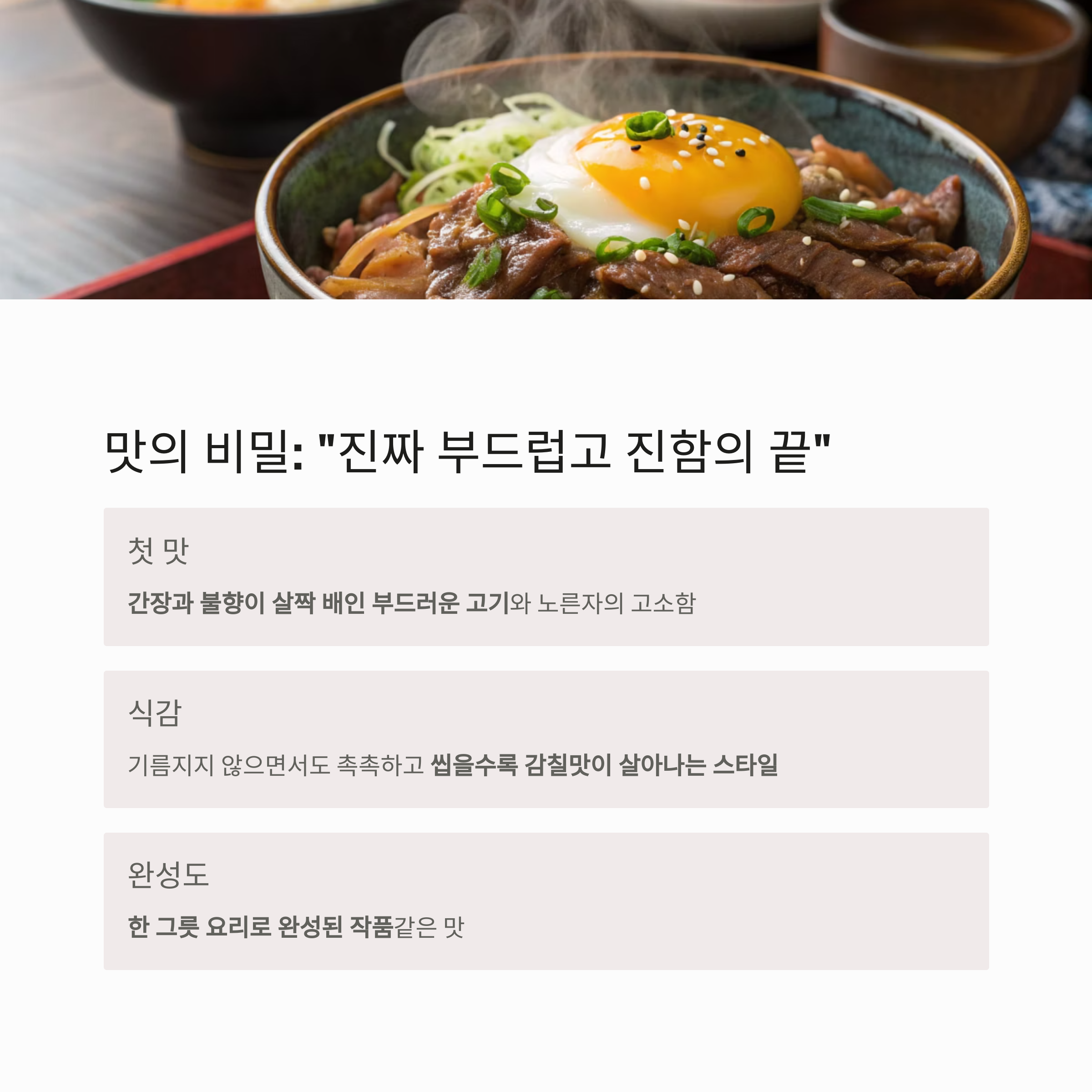 "이건 단순한 규동이 아니고, 한 그릇 요리로 완성된 작품이다"라는 생각이 들었습니다.