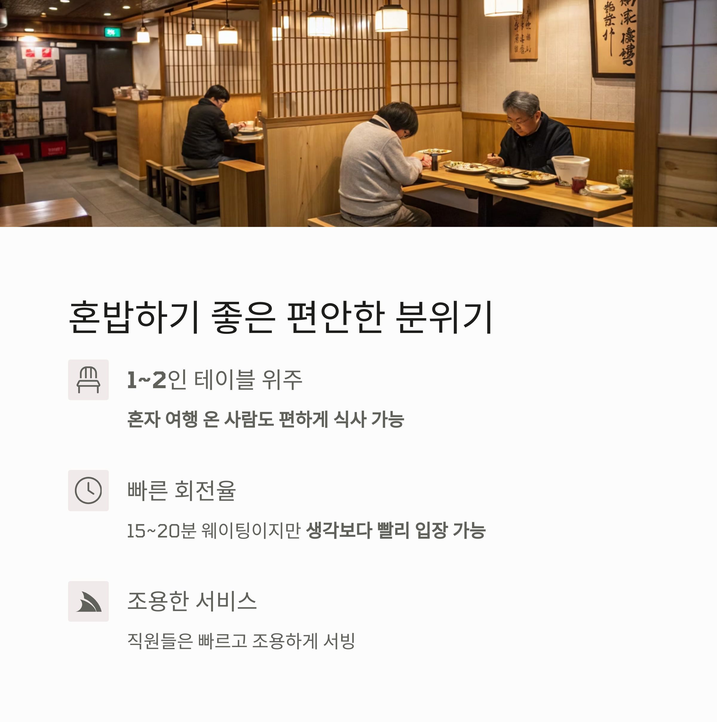 혼밥하기 딱 좋은 분위기, 빠른 회전도 장점