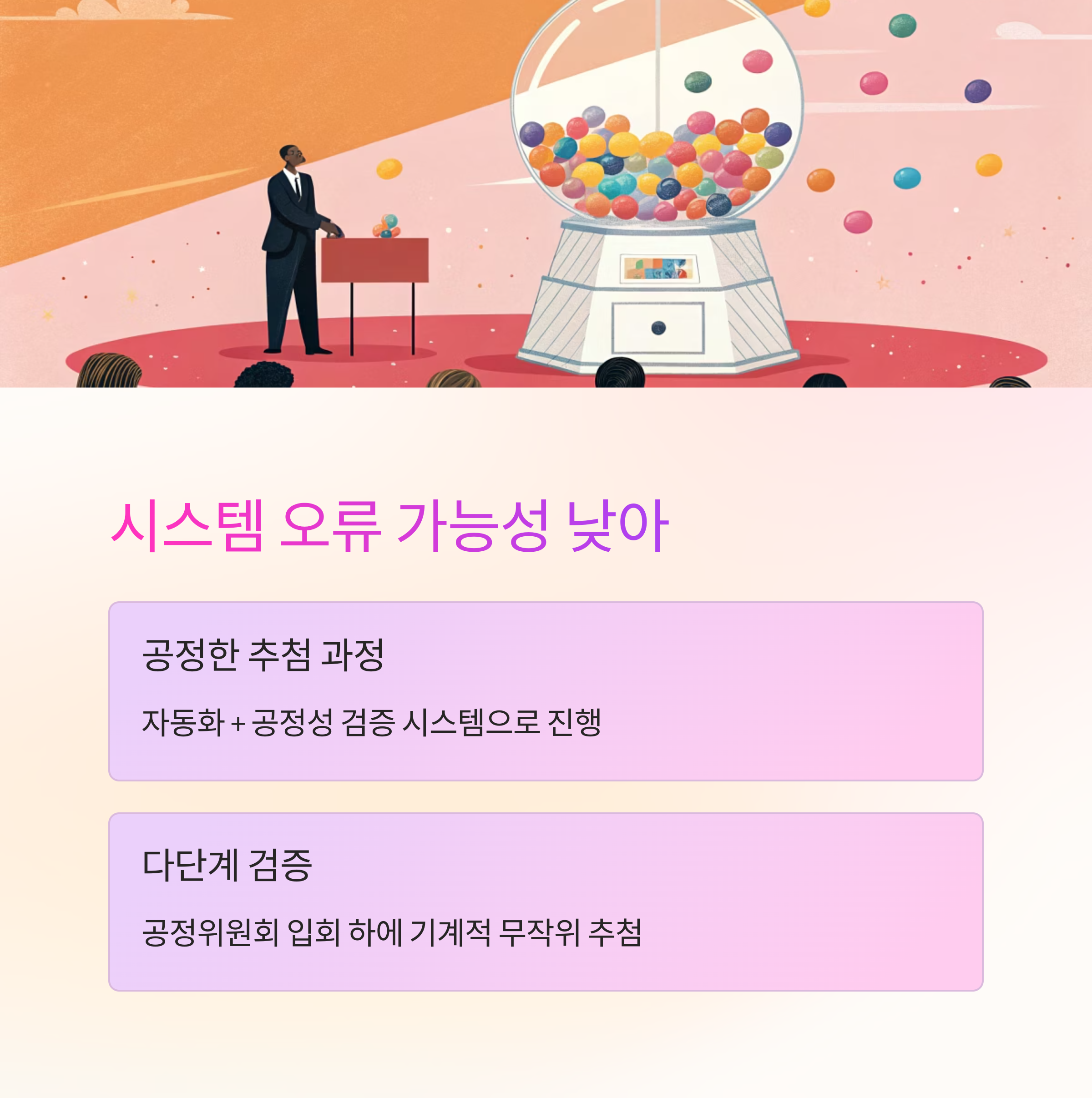 복권 수탁업체 동행복권과 과학기술정보통신부는 “당첨 번호 추첨 및 검증 절차는 자동화 + 공정성 검증 시스템으로 진행된다”며 오류 가능성을 일축했습니다. 로또는 매주 공정위원회 입회 하에 기계적 무작위 추첨이 이뤄지고, 다단계 검증 시스템을 통해 번호 오류 여부를 확인합니다.