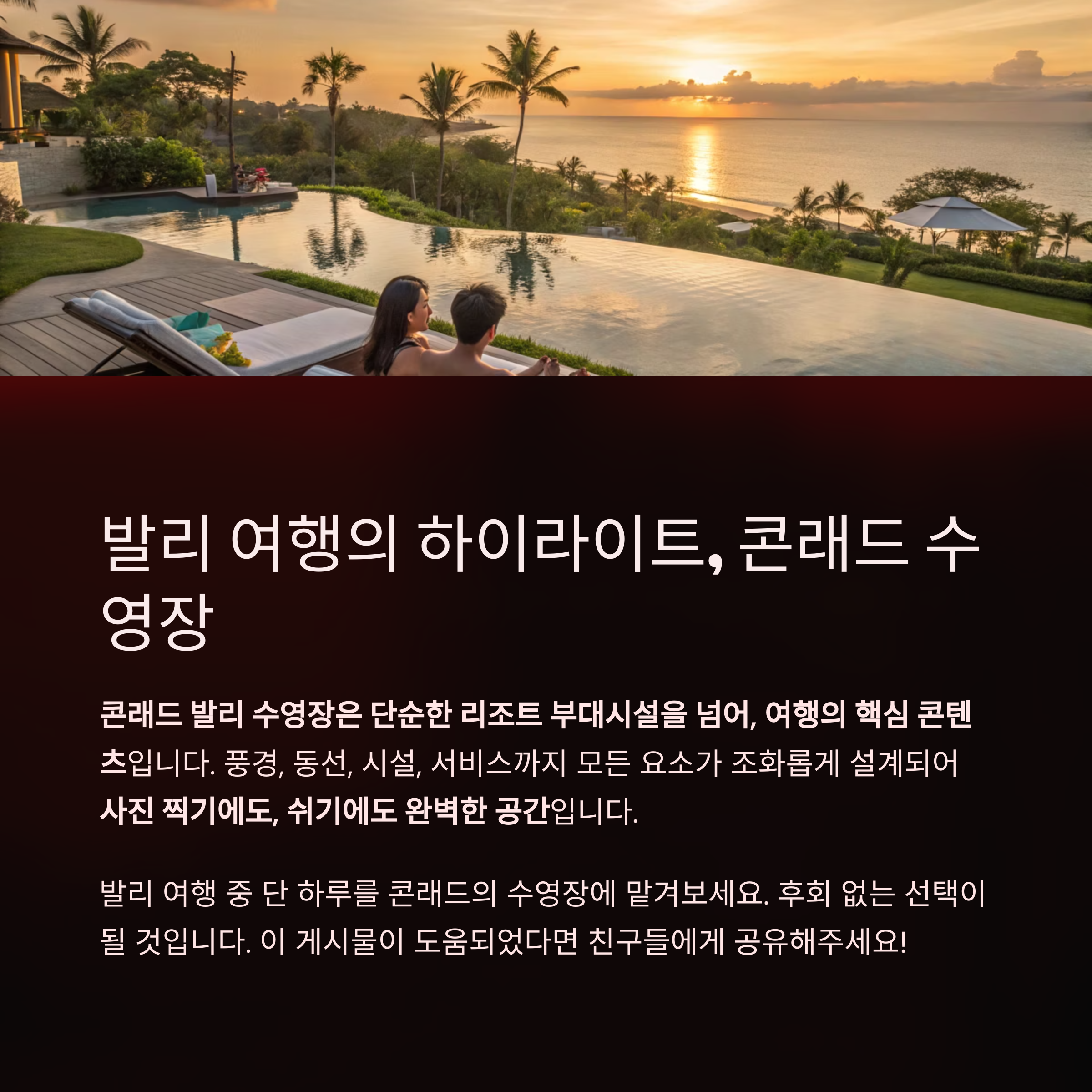 결론: 콘래드 발리 수영장은 ‘뷰 미쳤다’는 말이 절로 나오는 공간