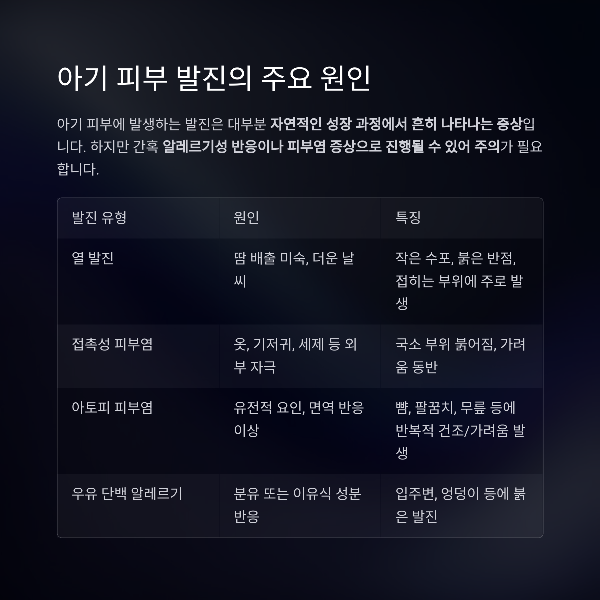 이번 글에서는 아기 피부 발진의 주요 원인부터 민감성 피부를 위한 올바른 관리법까지