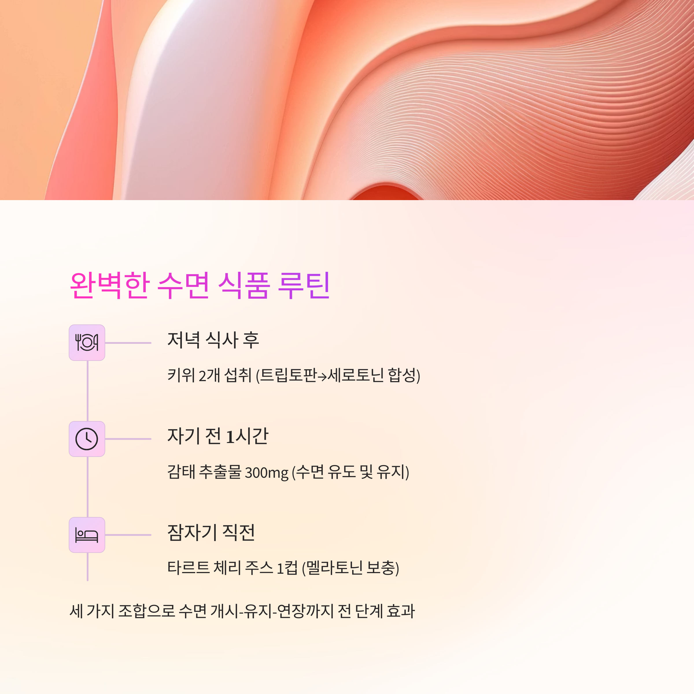 | 저녁 식사 후 | 키위 2개 | 트립토판→세로토닌 합성 |