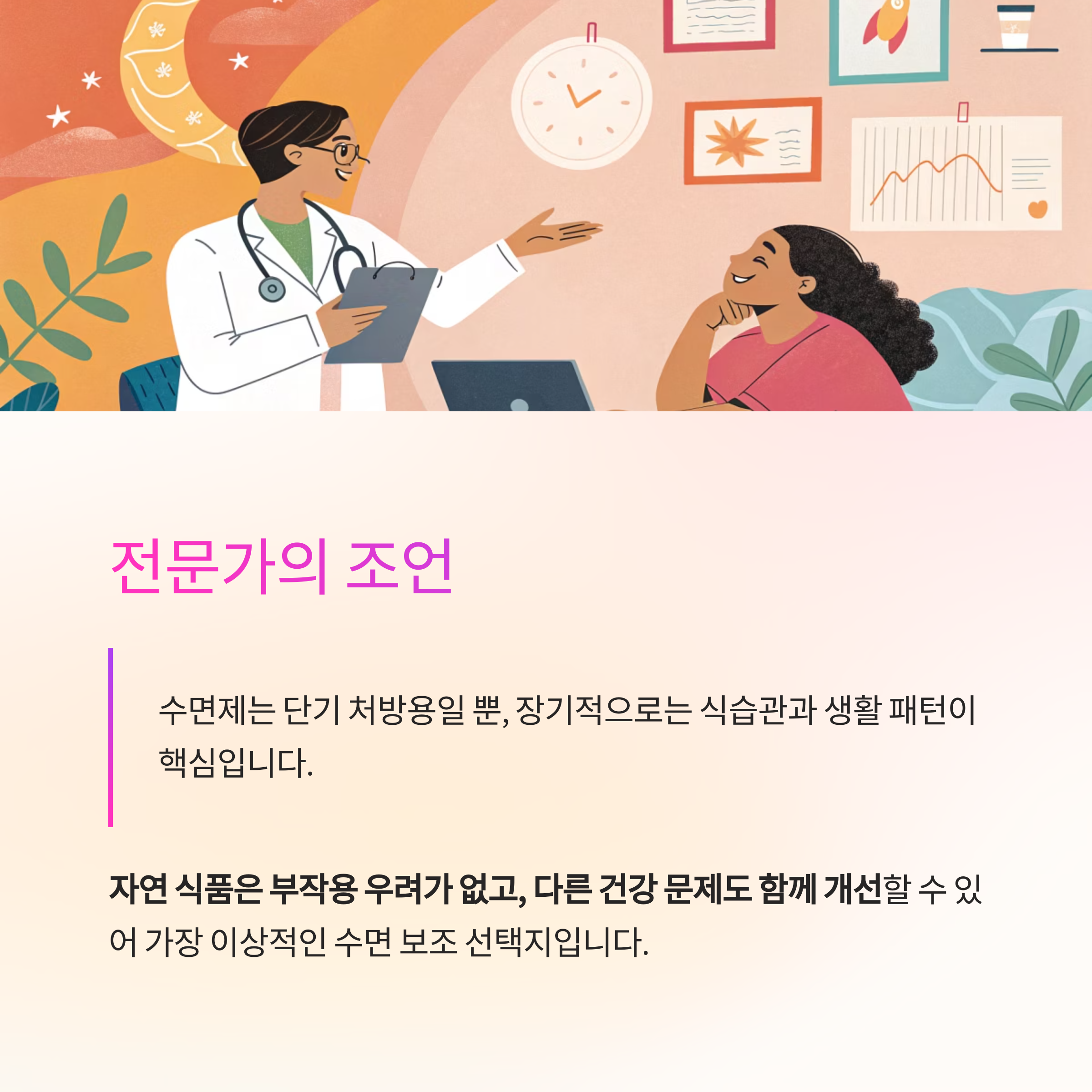 전문가 조언: “자연식품 기반 수면 전략이 우선입니다”