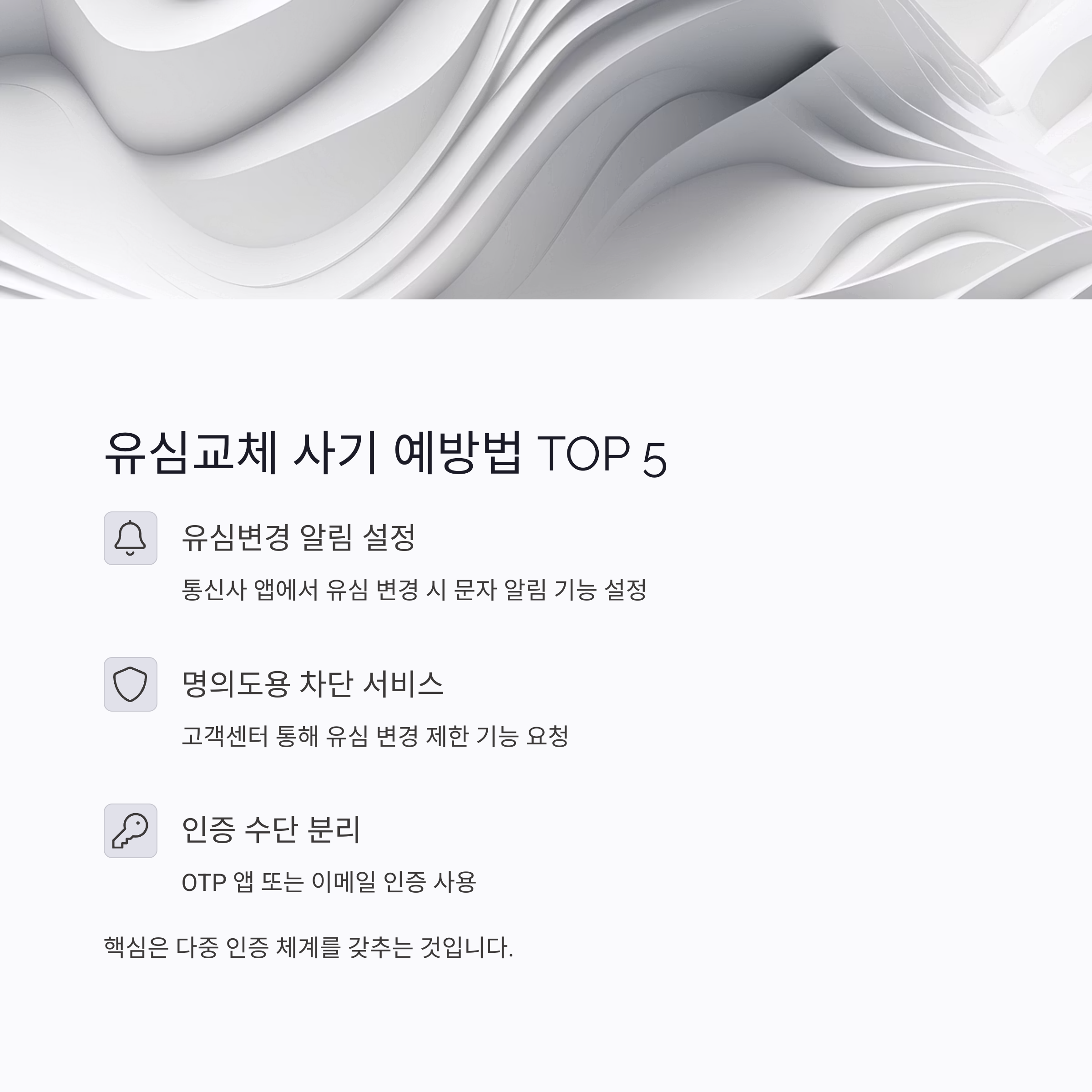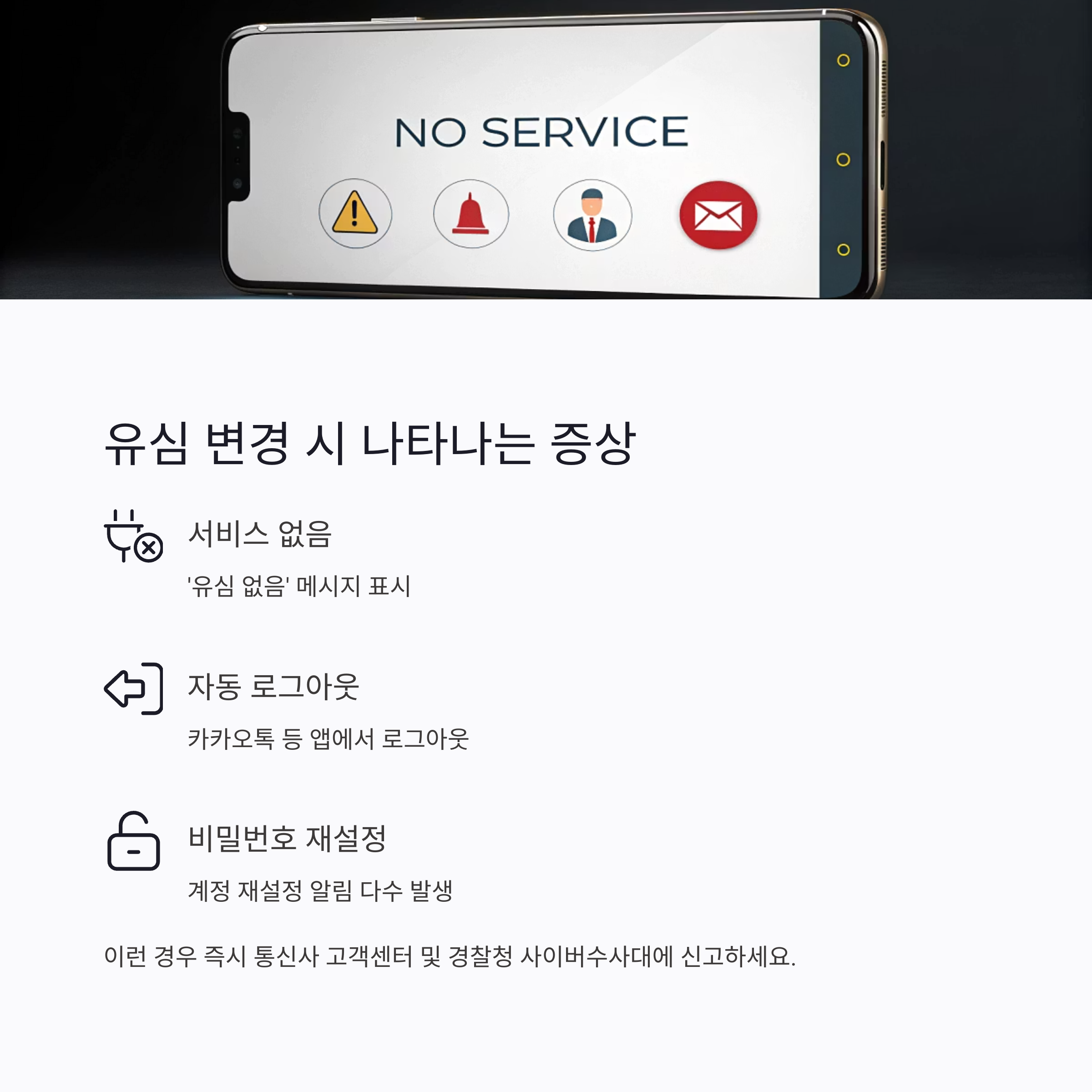 | 유심변경 알림 설정 | 각 통신사 앱에서 유심 변경 시 문자 알림 기능 필수 설정 |