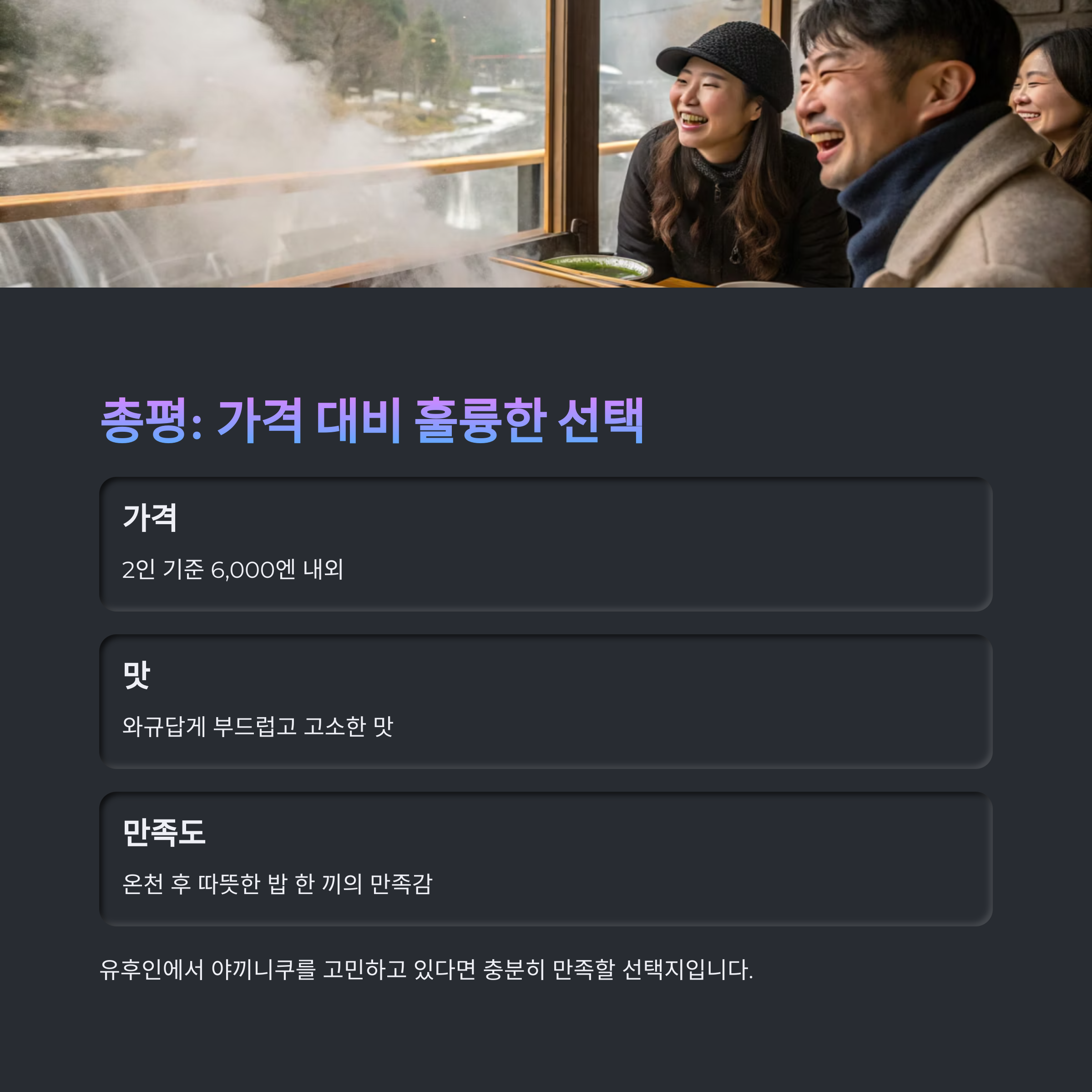 총평: 유후인에서 꼭 한 끼는 고기! 가격 대비 훌륭한 선택