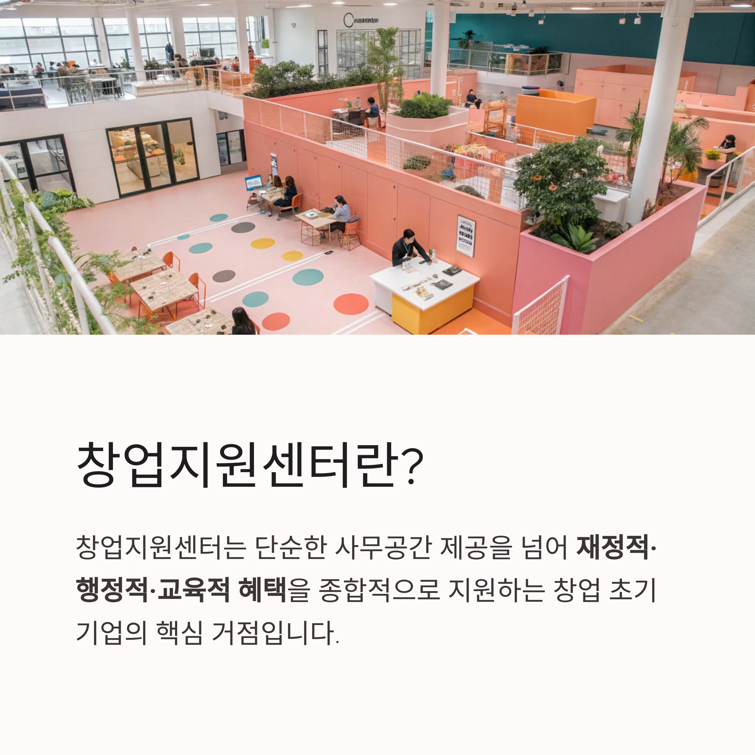 입주와 동시에 다양한 정부 지원사업에 대한 정보와 연계 기회가 제공됩니다.