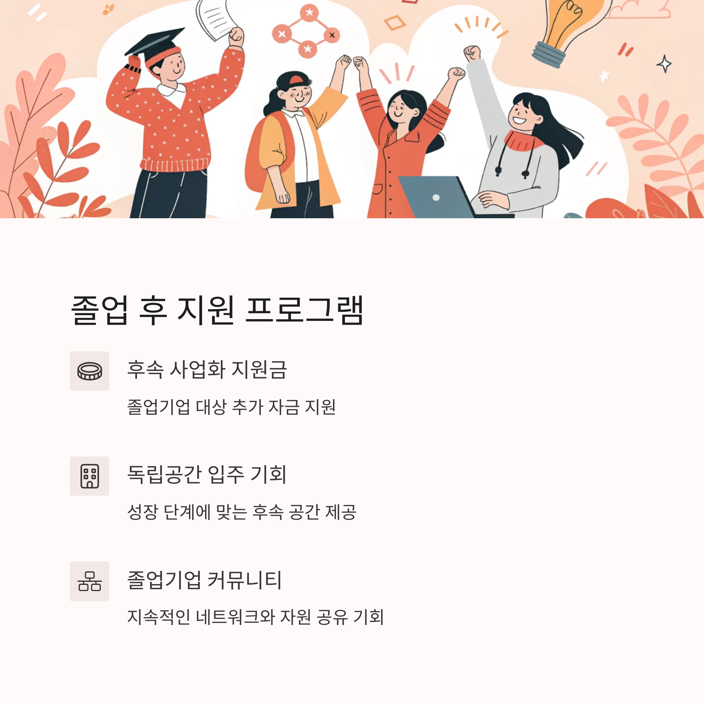 졸업 후 혜택 및 추가 성장 지원 프로그램