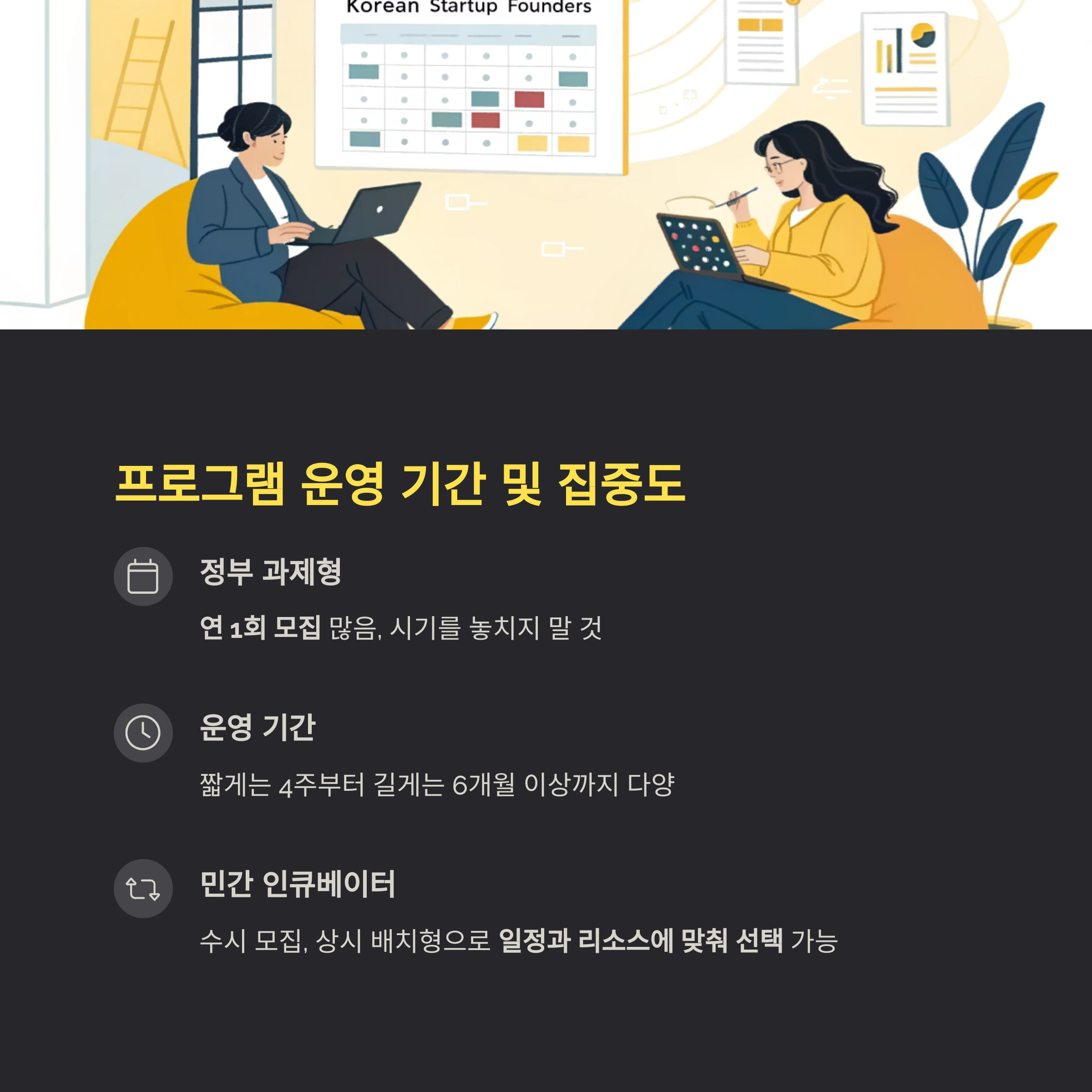 민간 인큐베이터의 경우 수시 모집, 상시 배치형 프로그램도 많아