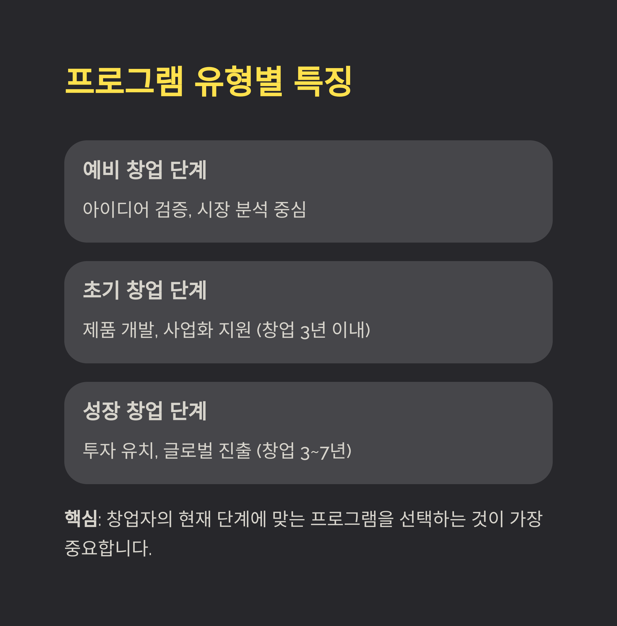 핵심: 창업자의 현재 단계에 맞는 프로그램을 선택하는 것이 가장 중요합니다.