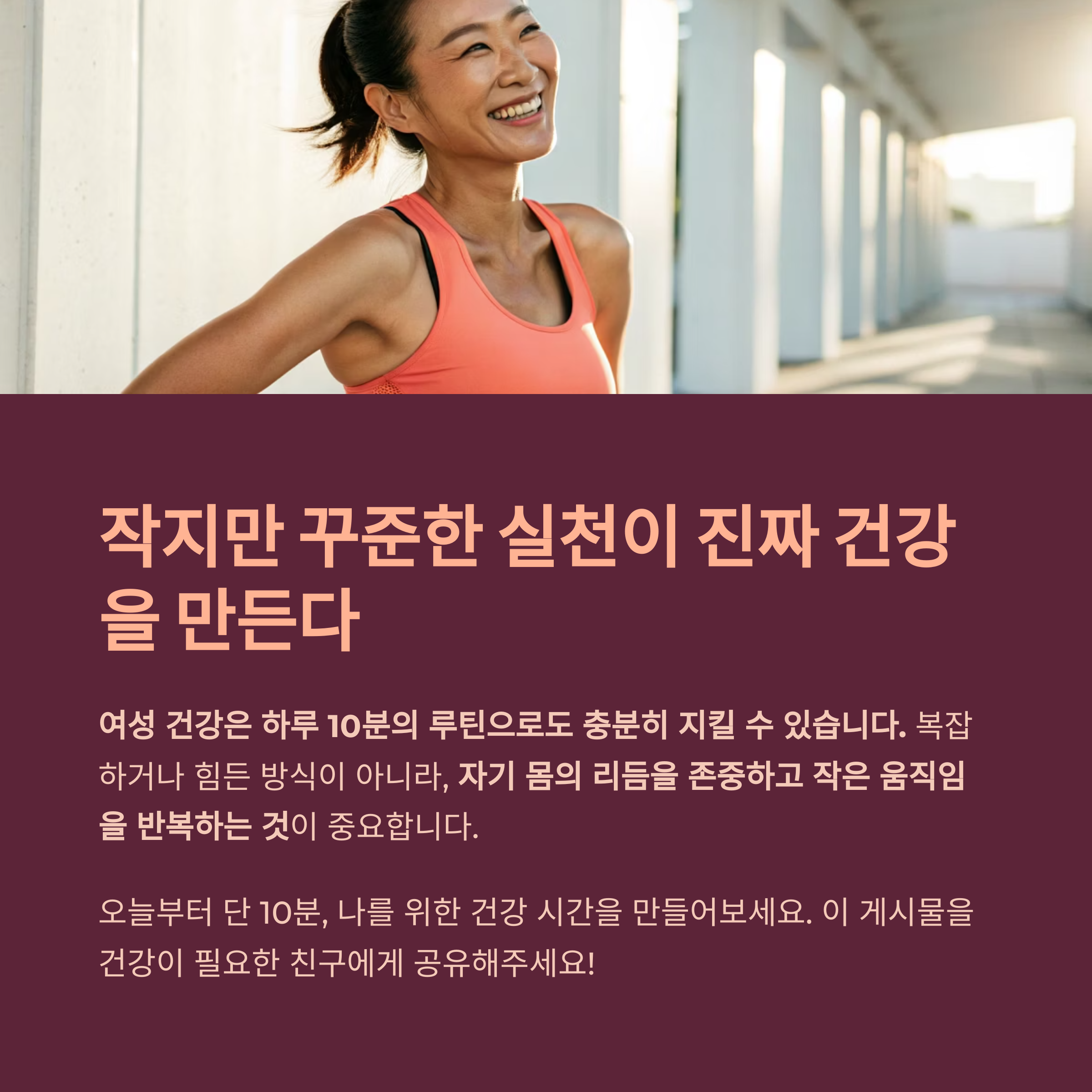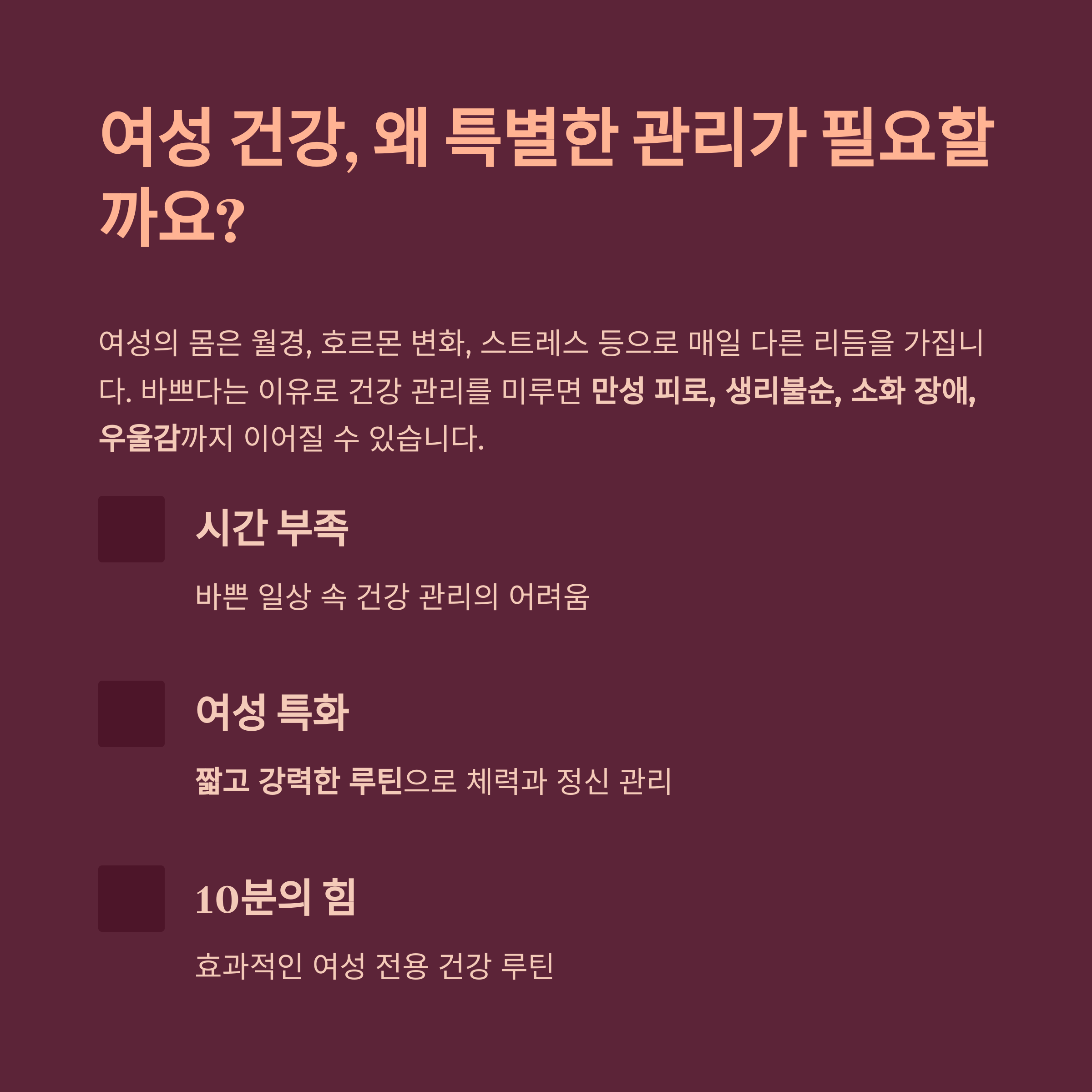 여성 건강은 하루 10분의 루틴으로도 충분히 지킬 수 있습니다.
