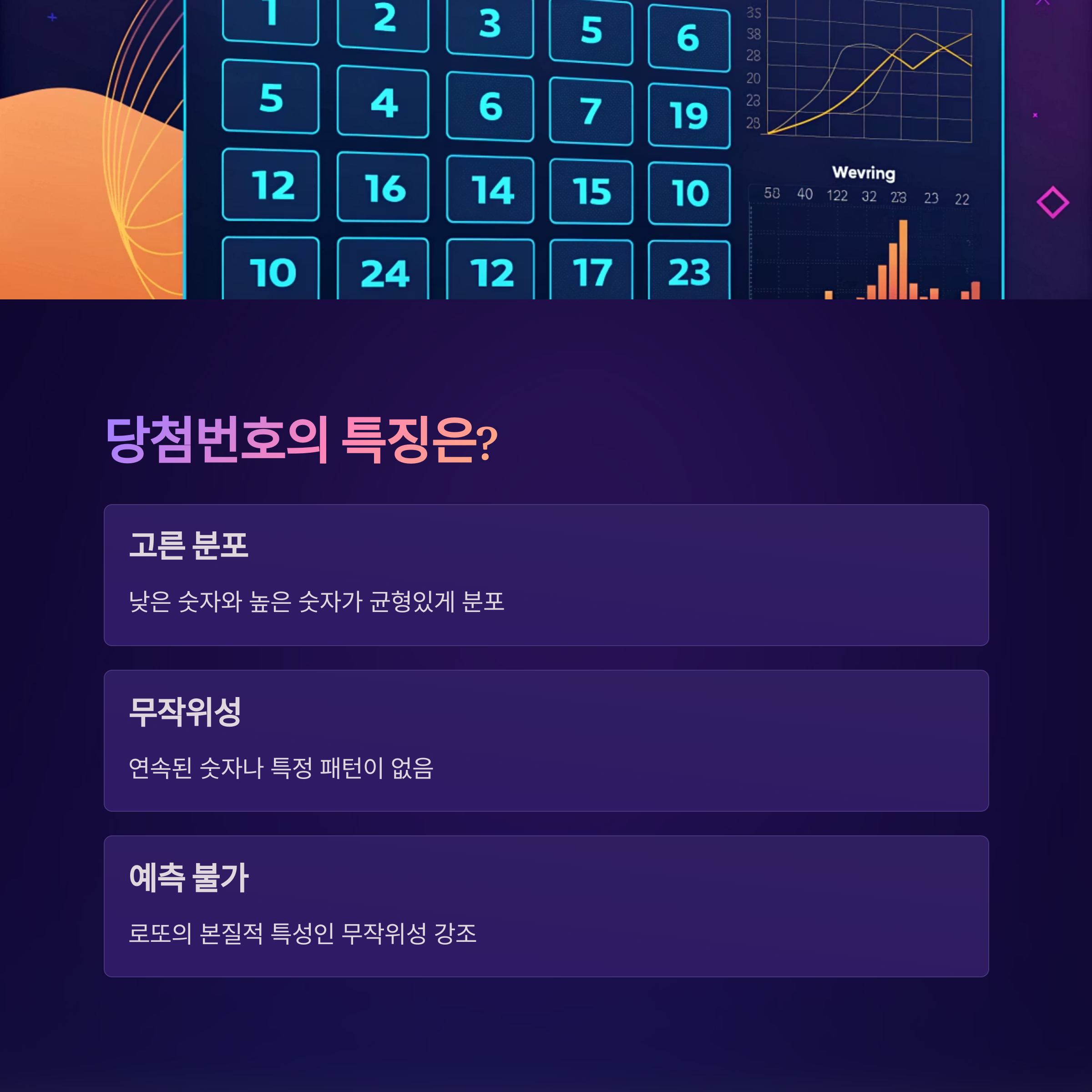 이번 당첨번호를 분석해보면, 특정 패턴이 눈에 띕니다. 낮은 숫자와 높은 숫자가 고르게 분포되어 있으며, 연속된 숫자나 특정한 규칙성이 보이지 않습니다. 이는 무작위성을 강조하는 로또의 특성을 잘 보여줍니다.
