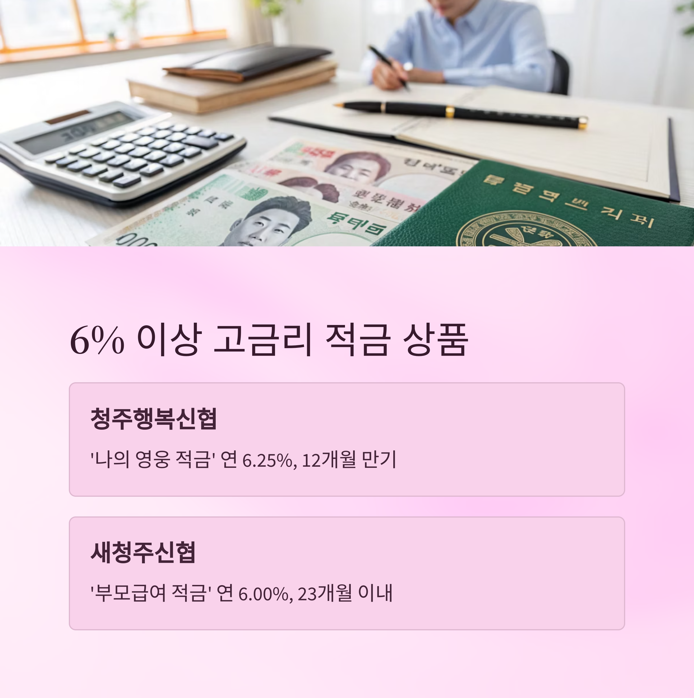 | 정기적금 | 청주행복신협 | 6.25% | 대면/비대면 | 12개월 만기 |