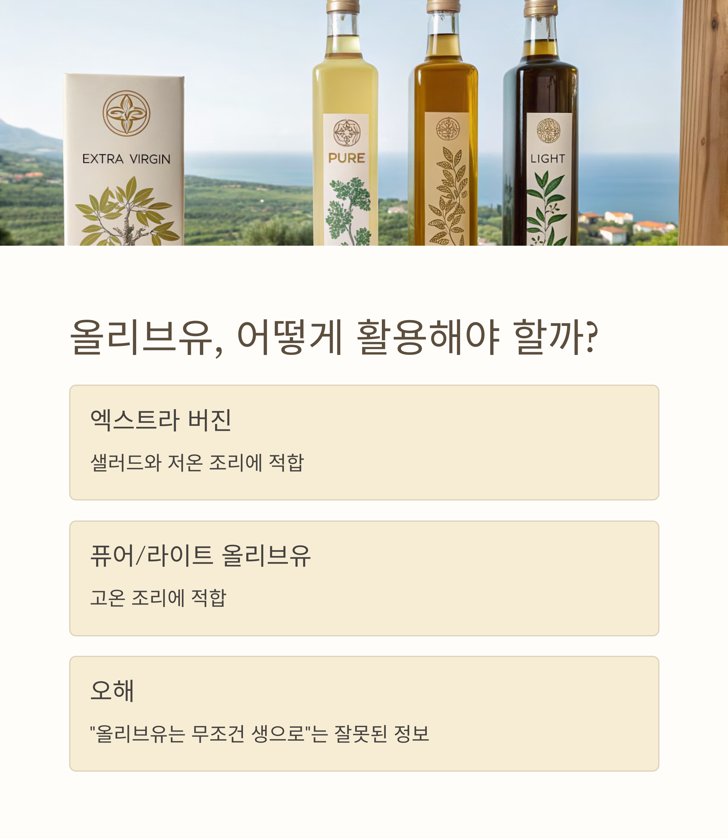 "올리브유는 무조건 생으로"라는 오해는 버리는 것이 좋습니다.