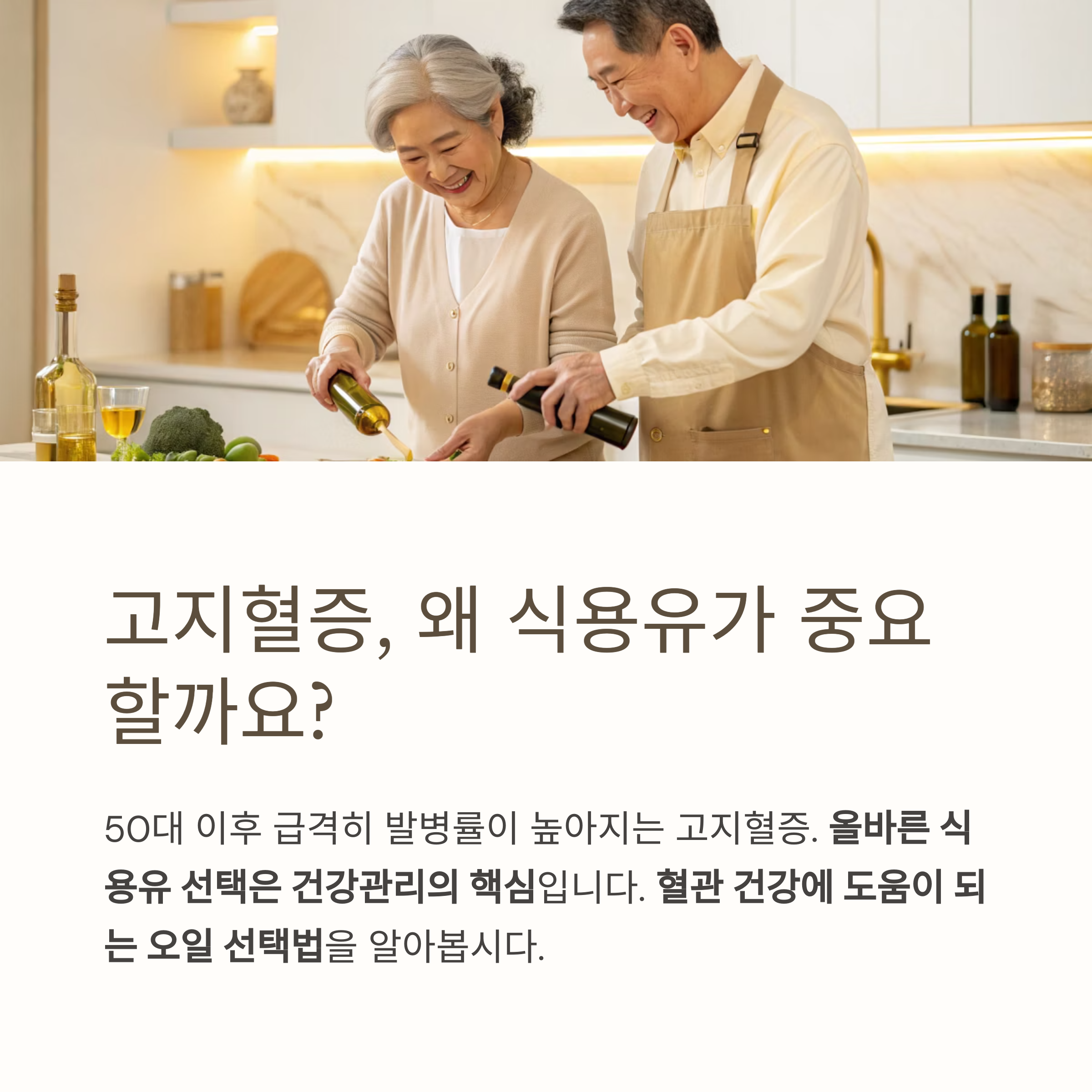 이번 글에서는 고지혈증을 걱정하는 50대 분들을 위해 혈관 건강에 도움이 되는 오일 선택법을 소개합니다.
